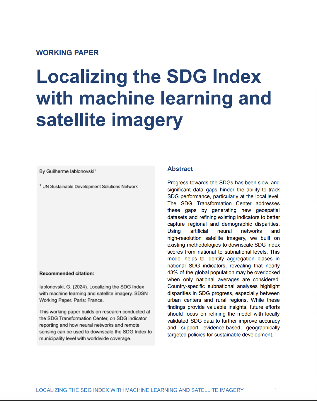 Using artificial neural networks and high-resolution satellite imagery, we built on existing methodologies to downscale SDG Index scores from national to subnational levels. This model helps to identify aggregation biases in national SDG indicators, revealing that nearly 43% of the global population may be overlooked when only national averages are considered.